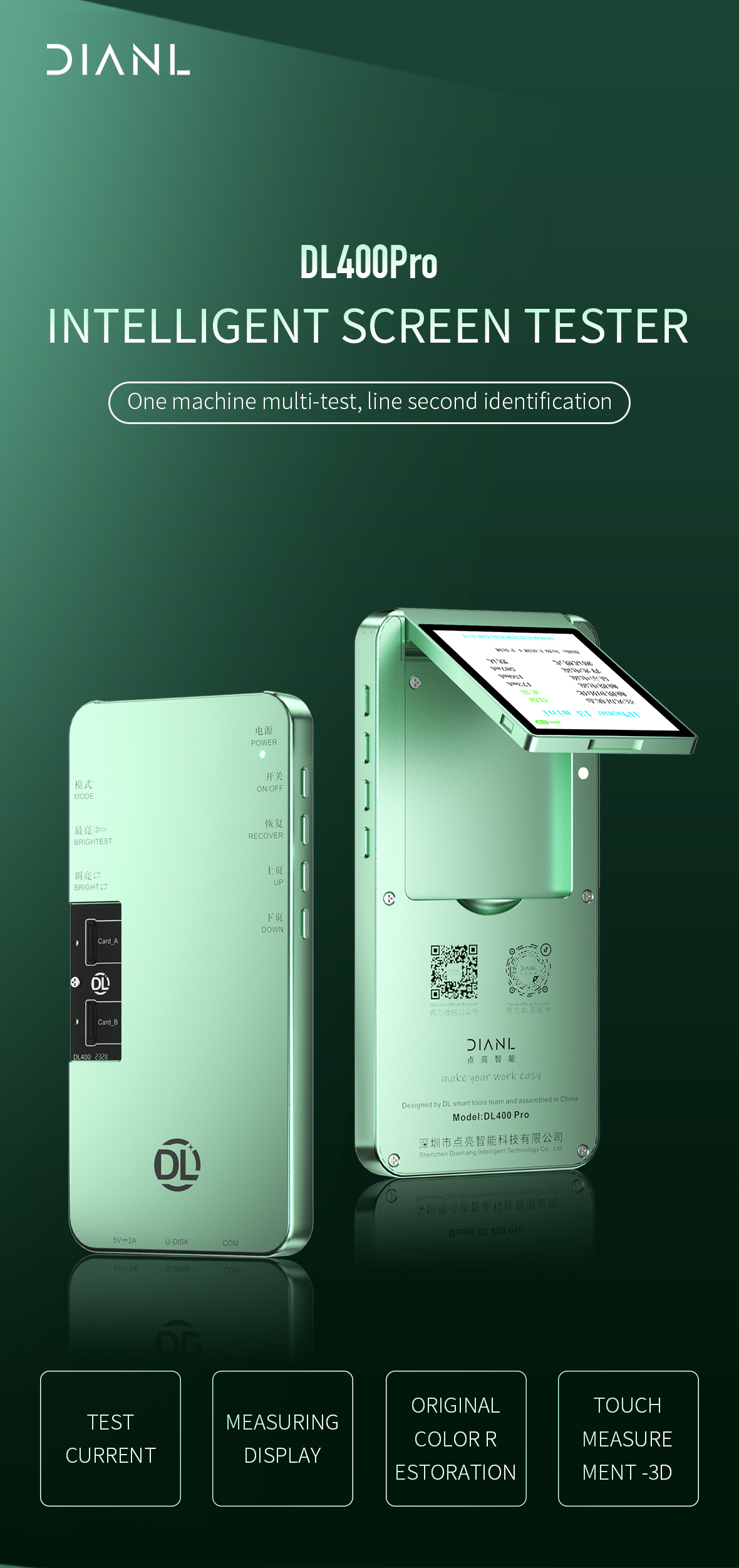 The selling point of the original color repair: DL400 Pro Smart Screen Tester supports the original color repair to make the display more vivid. Continuously upgrade the compatible version, remote upgrade without burden, strong stability, support reverse charging and data transmission.