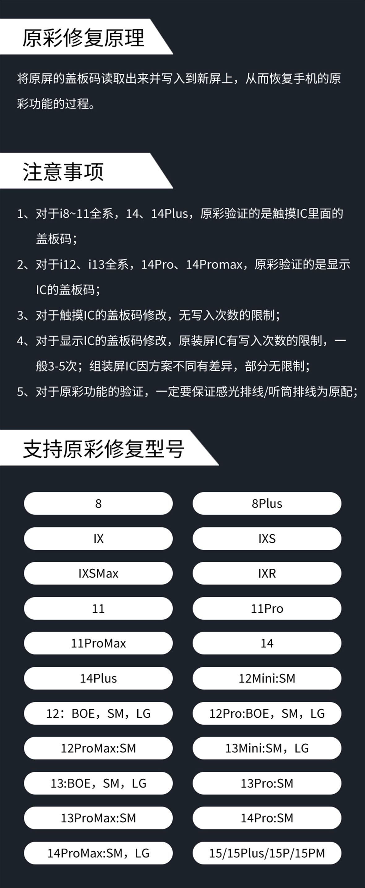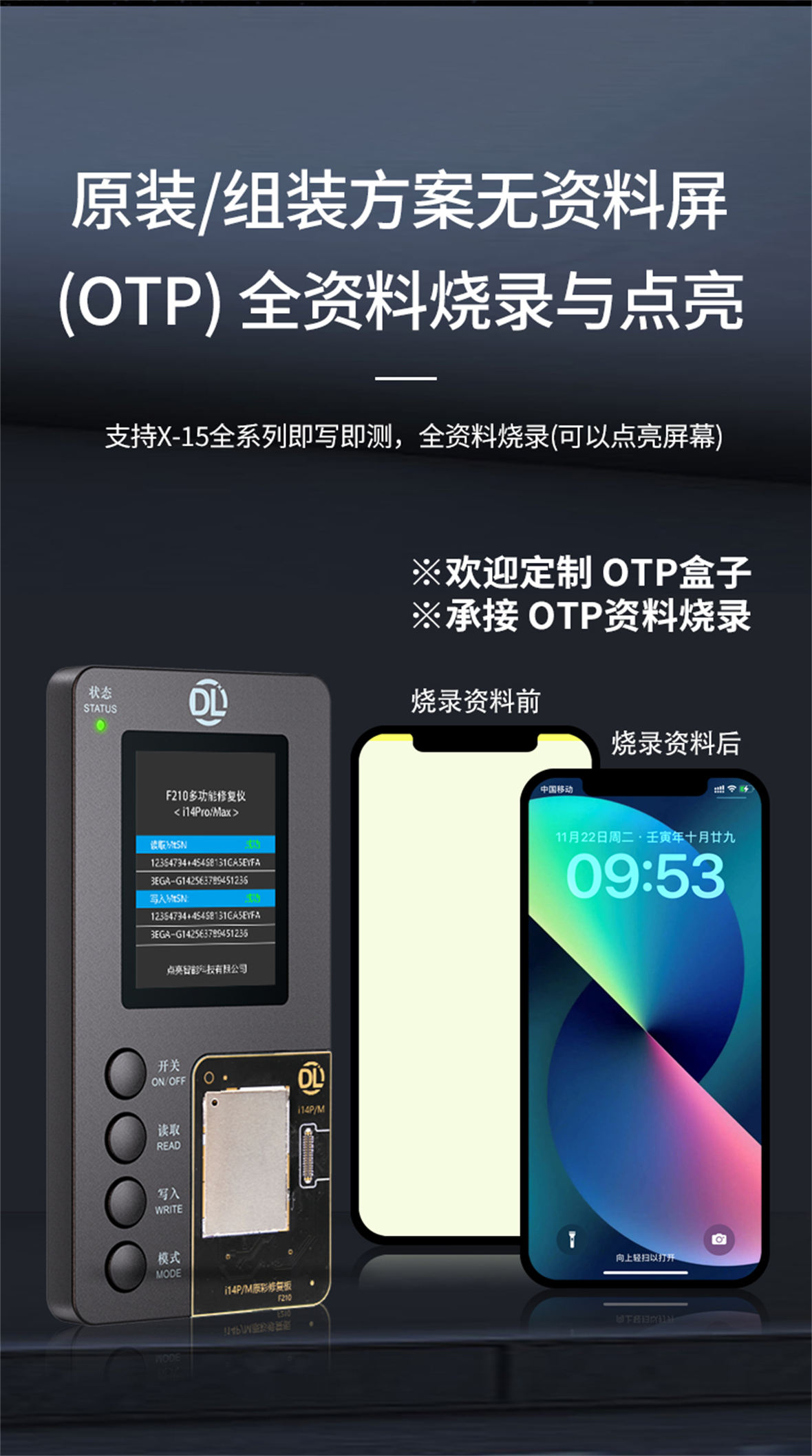 設備用途:用于手機屏幕原彩修復、電池健康度修復校準、原裝方案無資料屏(OTP)